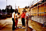 Die Wände schließen sich jetzt zügig im gesamten Gebäudekomplex. Bald kommt der Dachstuhl und kann dann gerichtet werden ... |